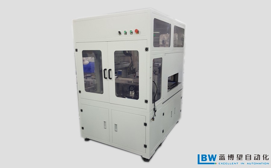 該設備為在線式點膠機,產品或由專用的產品工裝從設備的側方左進右出或右進左出,傳送到設備內部并對產品進行簡單的定位夾緊,使產品具有相對一致的位置,然后利用位于機械手頭部的相機組件對產品上的Mark點進行拍照定位。定位完成后設備開始到事先程序建立的位置進行點膠,點膠完成后,松開產品,產品或帶工裝的產品經由設備內的鏈板線自動流至下一個工位。